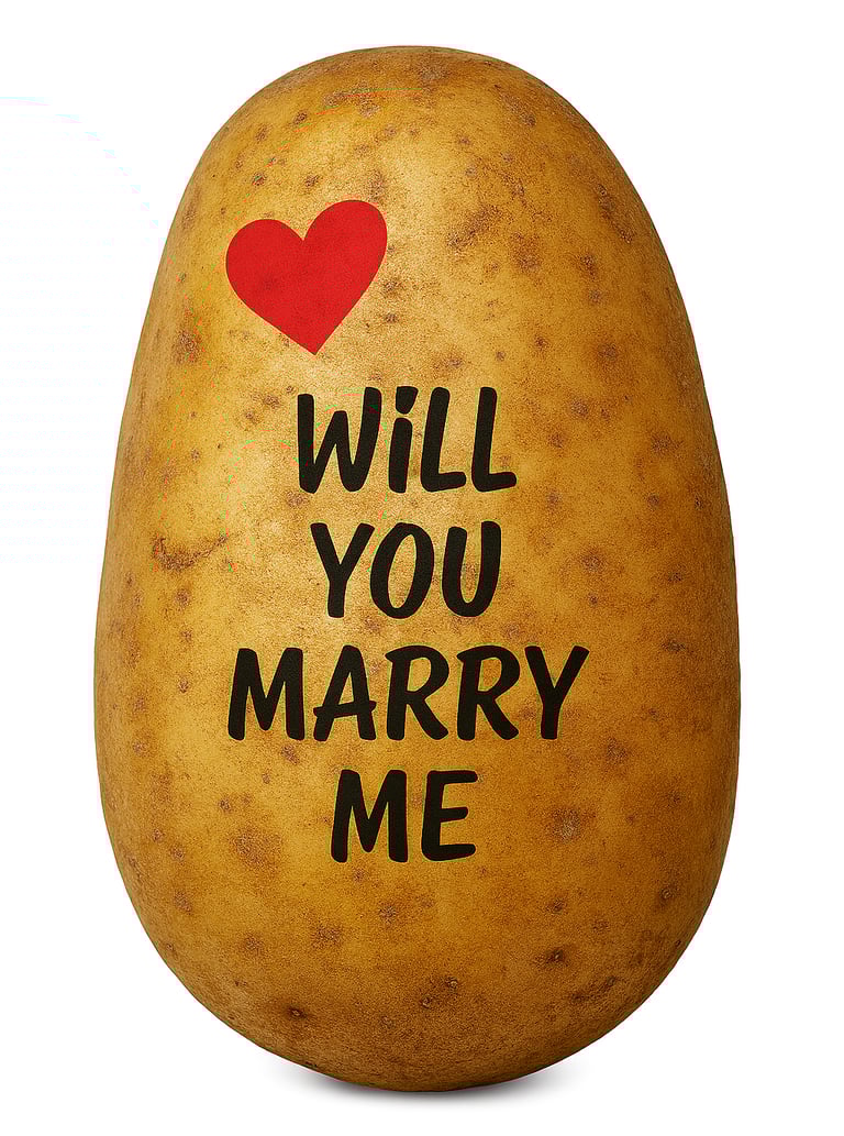We deliver a single potato with your own handwritten message—perfect for a laugh or a quirky surprise. This unique gift can bring joy and laughter to any occasion, whether it's a birthday, a special event, or just a random act of kindness. Imagine the delightful reactions of your friends and family when they receive such an unexpected treat! It's not just a potato; it's a conversation starter and a memorable gesture that they'll cherish.